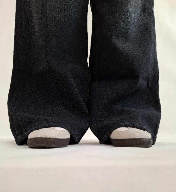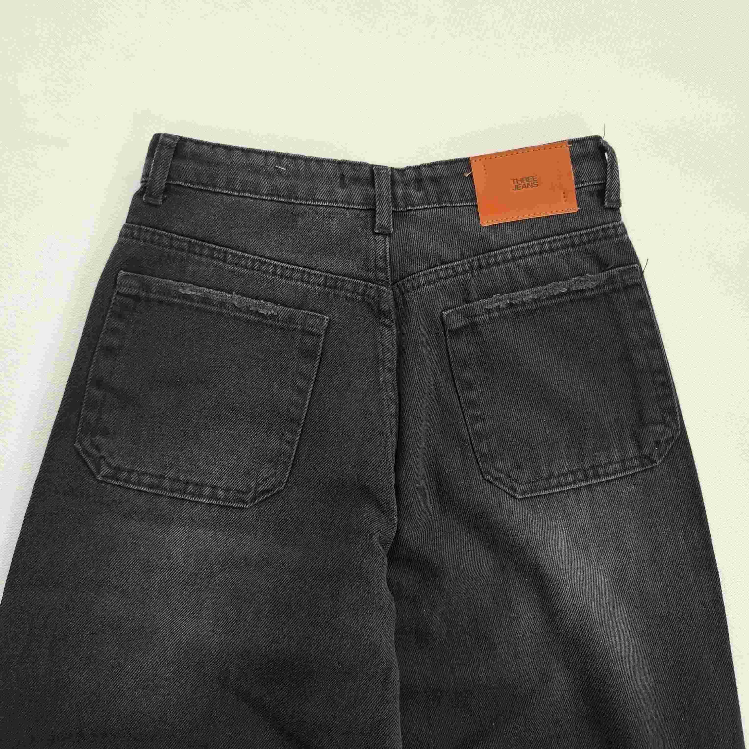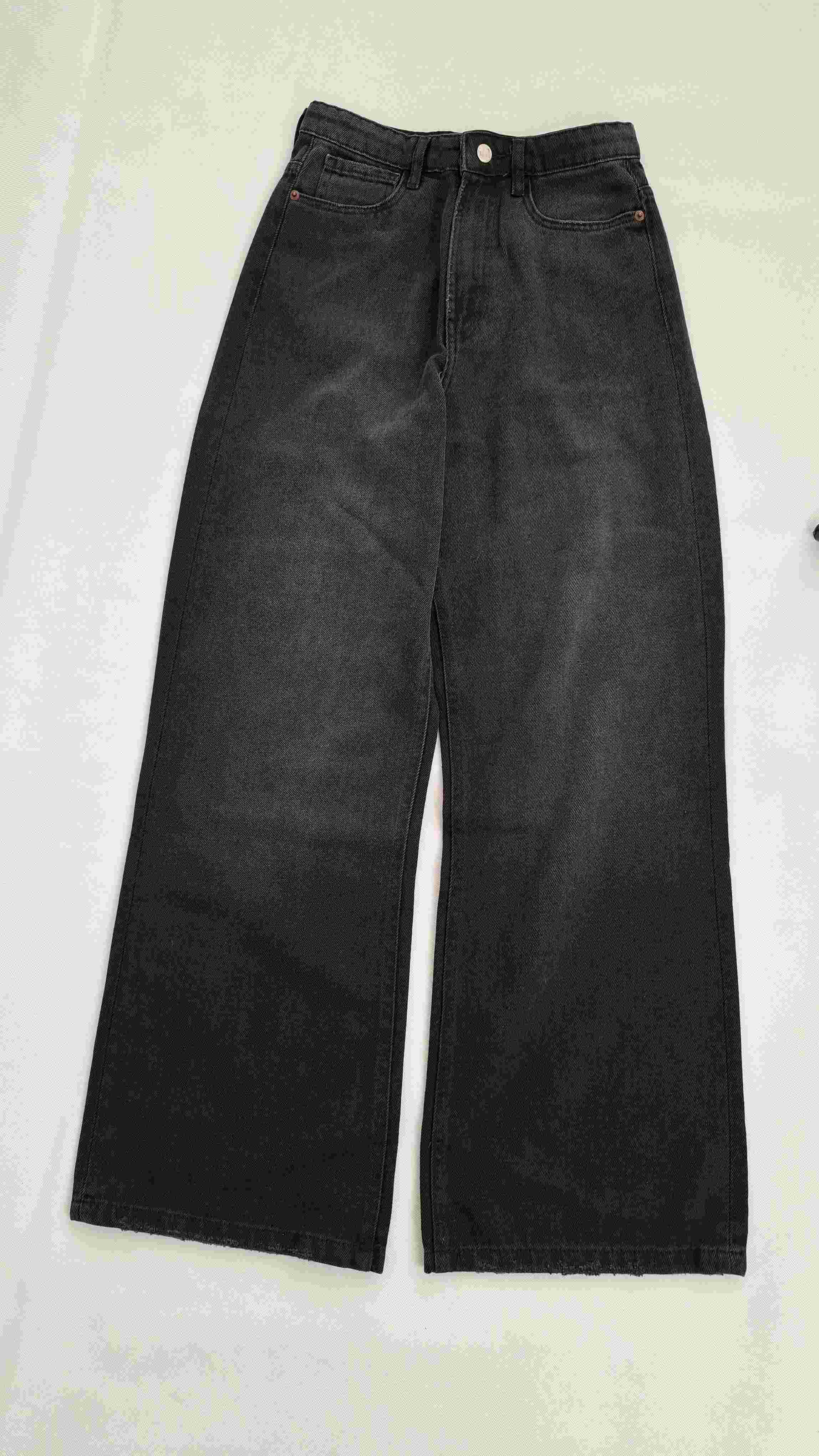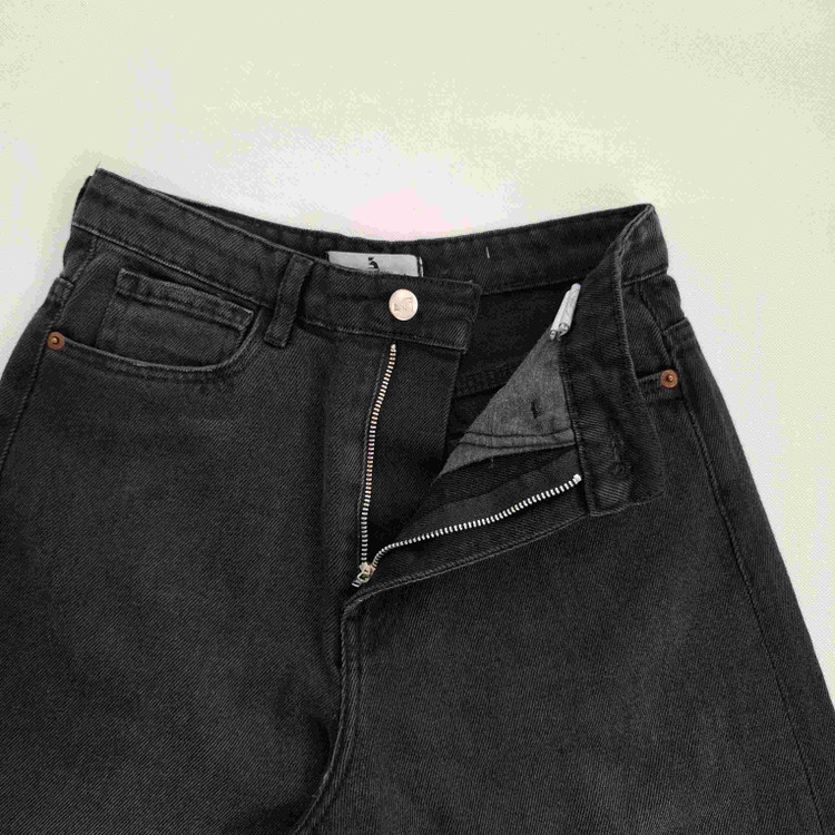 شلوار جین زنانه تک رنگ زغالی مدل بگ