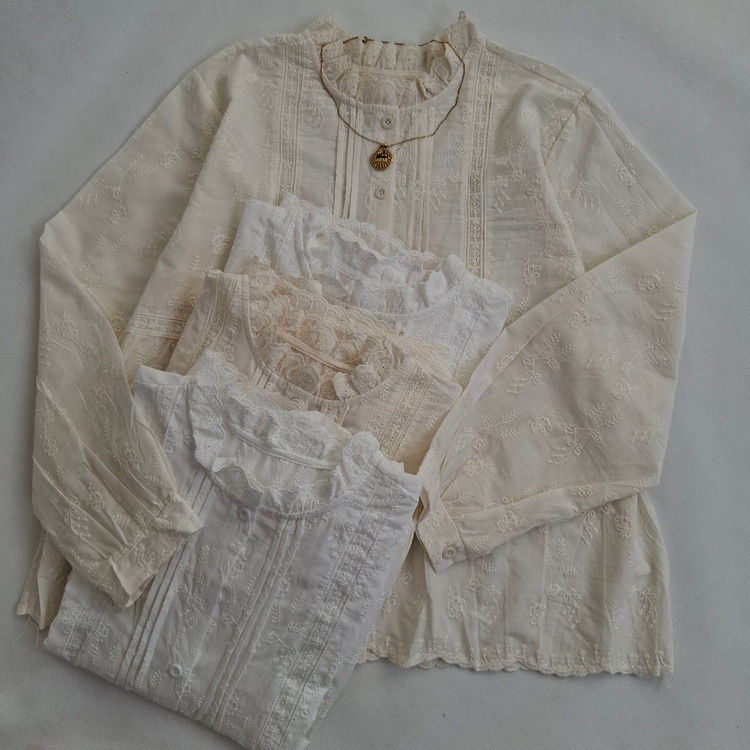 شومیز خامه دوزی به رنگ سفید و نباتی