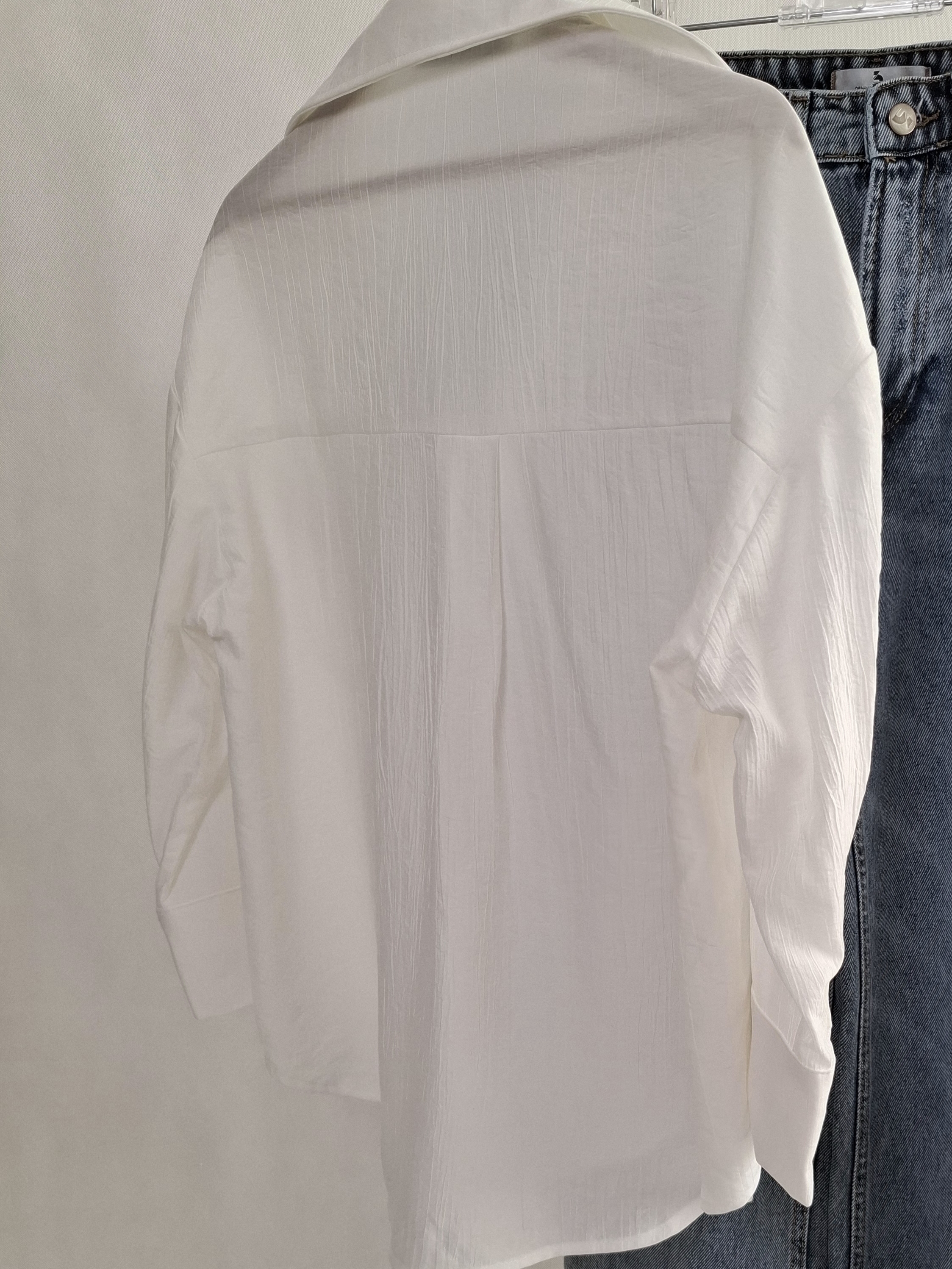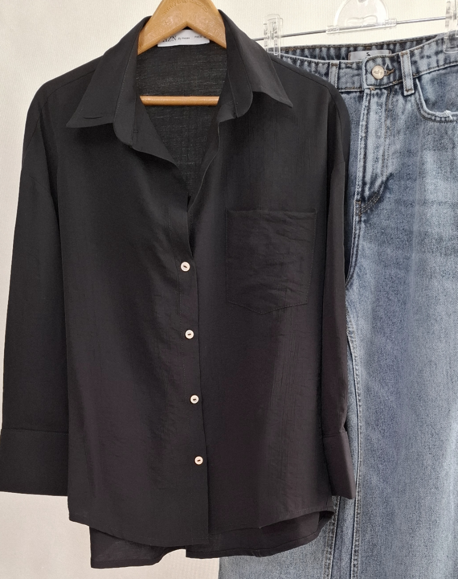 شومیز زنانه جنس لایوسل به رنگای سفید مشکی کرم سورمه ایی قد جلو لباس 58 سانت و قد پشت 66 سانت پهنای شومیز از ناحیه زیر بغل تا زیر بغل بدون کشش 56 سانت می باشد.